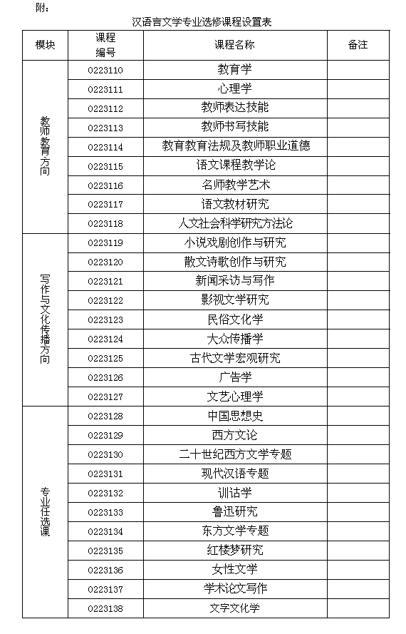 语言学概论、现代汉语、古代汉语、文学概论、中国现当代文学、中国古代文学、外国文学、写作、美学、语文课程教学论