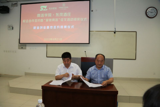 人文公司党委书记杜明生与王青宁董事长共同签署了《校企合作共建老员工创新创业实践基地协议》。程敏代表公司向陕西东凤酒庄有限公司“老员工生创新创业实践基地”授牌,王青宁代表企业接牌并作表态发言。
