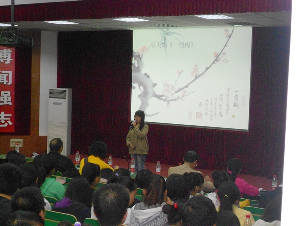 晚7:30,由我系团总支主办,第一员工党支部承办的中华古典诗词吟唱会,在一号楼报告厅二隆重举行。我系教授王天时,辅导员赵文英、黄璜、刘丽娜担任此次活动评委。