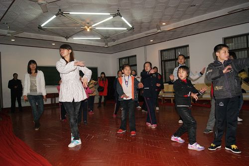 在舞蹈室里,我系十大技能中心——体育与健美部、舞蹈与表演部的王慧、师小娜、李楠等同学给小朋友们表演了健美操、排舞等舞蹈。舞蹈小组的小朋友们为志愿者们表演了他们精心准备的课本剧《丑小鸭》,在热烈的掌声中,雷瑞欣小朋友为到场师生表演了张扬活力与激情的现代舞《Nobody》。