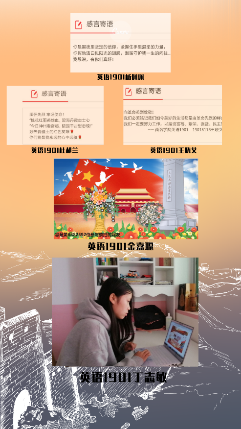 以中华英烈网为平台,公司员工采用敬献花篮、感言寄语等形式,向英烈致敬,表达对英烈的缅怀之情。与此同时,通过网上互动参与,网络直播等形式观看红色经典影视、诗词等文化作品,了解了英烈们的感人故事,进一步推进活动深入开展,学习英雄先烈精神。