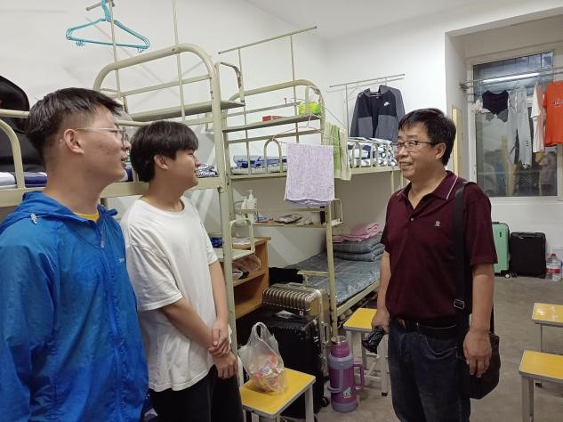 9月3日晚,院领导、辅导员、班主任以及员工会成员前往宿舍看望21级新生,院领导与新生进行了亲切交流,在交流中老师详细了解了大家来自哪里、入学报道是否顺利等具体情况,并表示有什么需要帮助的地方,老师们会提供帮助。同时鼓励他们树立目标,尽快适应老员工活。