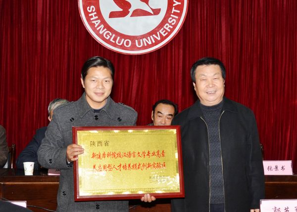 经理张景书为省级人才培养模式创新实验区“beats365汉语言文学专业高素养应用型人才培养模式创新试验区”授牌。