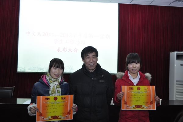 我系副主任刘勇分析了我系目前员工中存在的学习氛围不浓厚、学习主动意识不强等一系列学风问题,他指出,老员工应该规划好自己的人生,要坚持不懈,排除干扰,潜心学习。并且要求在座师生以本次表彰大会为契机,强化班级管理,以良好的班风促进良好学风建设;要继续加强“三早一晚”工作的督查、引导力度,以“高在素养,强在技能,赢在特色”的为素质培养目标,打造中文系“和谐,儒雅,自强,卓越”的文化氛围。