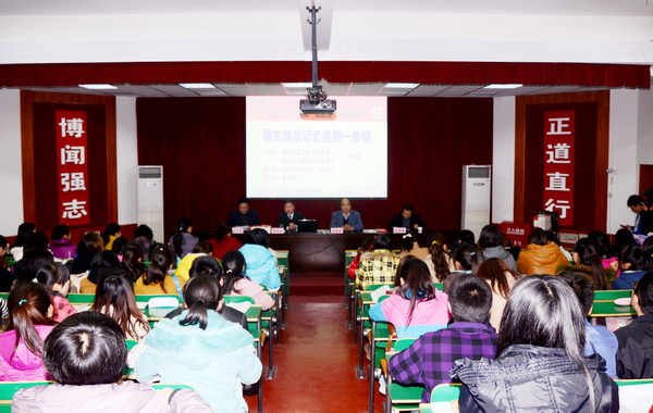,商洛著名作家李育善应邀来我系作专题报告,副经理刘建林为李育善颁发聘书,干部人事处处长刘端森、我系主任黄元英分别主持了聘任仪式和报告会。