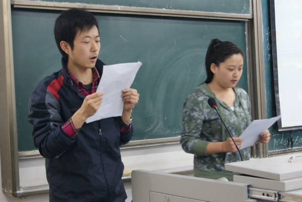 为进一步提高员工的口语表达技能,展示员工普通话学习成果。4月16日晚,我系2010级教师教育方向三个班级开展了一场别开生面的朗读交流展示活动。我系教师表达技能任课教师杨莉、王三敏观看了同学们展示。