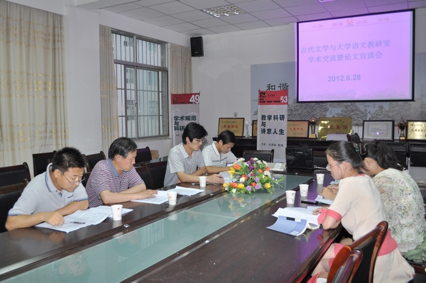 晚,我系古代文学与大学语文教研室举办了学术研究交流暨论文研讨会。我系副主任刘勇,李中合、弋朝乐、任梦池、王燕、刘婷等老师参加了研讨会,会议由古代文学与大学语文教研室主任王培峰老师主持。