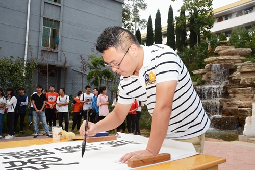 倚着小桥,伴着流水,诗朗诵《中秋的月亮》拉开了吟诵会的序幕,吟诵者声情并茂,观众们称赞连连。三笔字书法展演将活动推向高潮,党博博用小篆书写的“自强卓越,和谐儒雅”,大气磅礴,突显文传院的精神气质。随着悠扬的音乐想起,饱含深情的吟诵《中秋之夜》《没有月亮的中秋》《中秋月思》等诗词,让听者如痴如醉。师生在吟诵诗歌、互动游戏的快乐氛围中共话佳节。