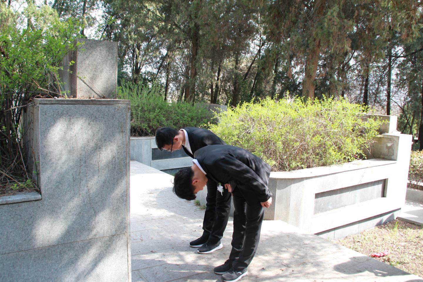 在庄严的奏国歌仪式后,员工代表向革命先烈敬献花篮,全体师生三鞠躬表达对先烈的深切悼念之情。
