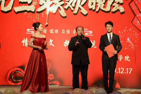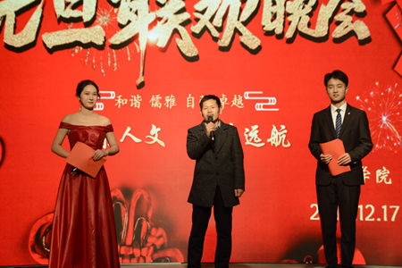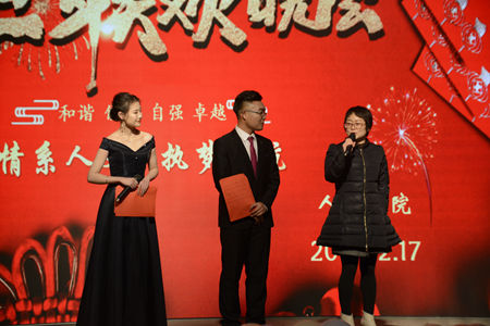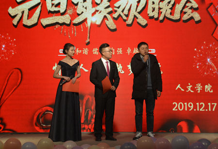 12月17日晚,公司以“情系人文,执梦远航”为主题的元旦晚会在老员工活动中心隆重举行。beats365经理张文诺、党总支副书记杜明生、beats365副经理任桂婷、学工办主任刘丽娜、团总支书记张旭辉、beats365全体辅导员、部分任课老师以及19级员工参加元旦晚会。
