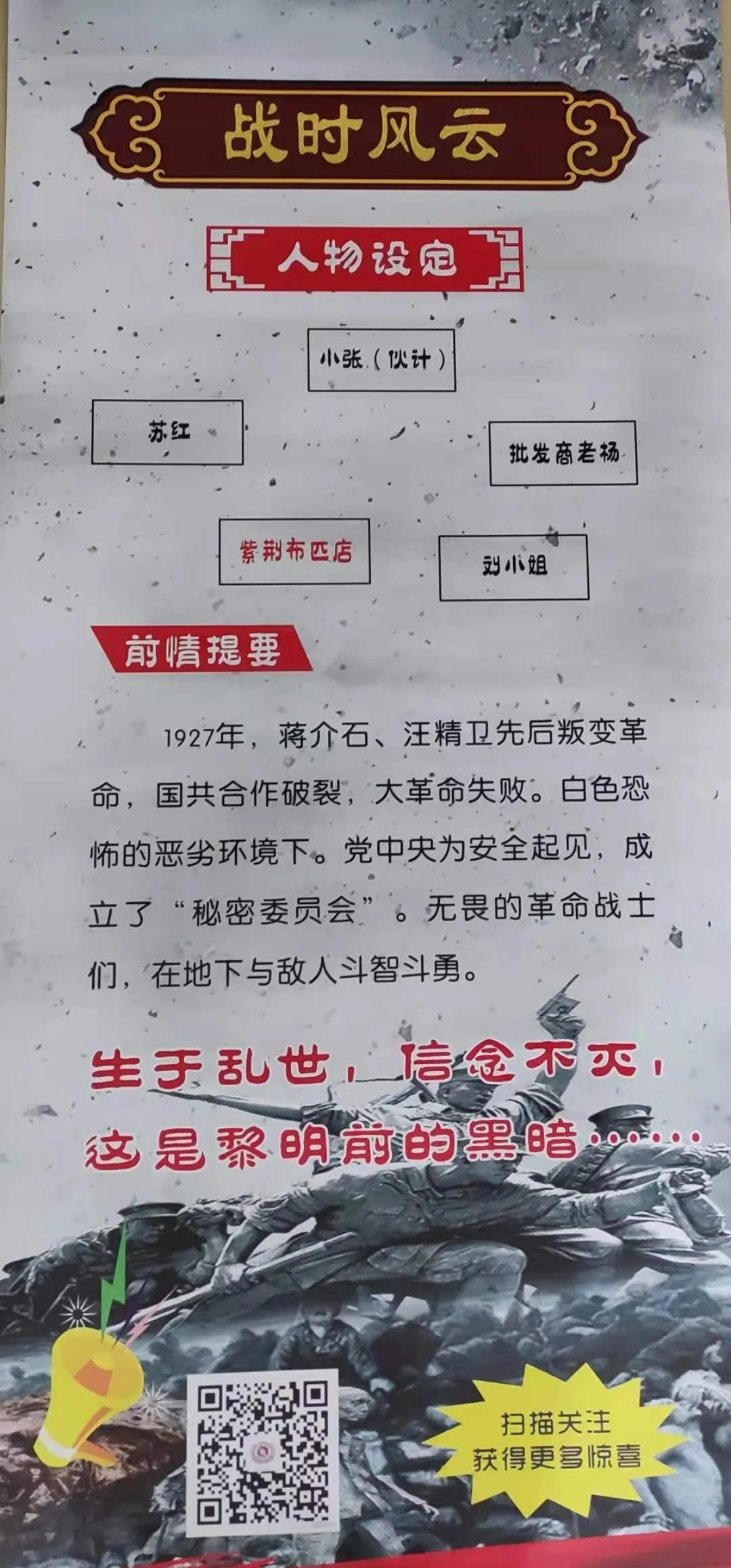 背景三:战时风云,在国民撕破合作协议,发起白色恐怖,生于乱世,如何坚守自己的信念,由你而变。