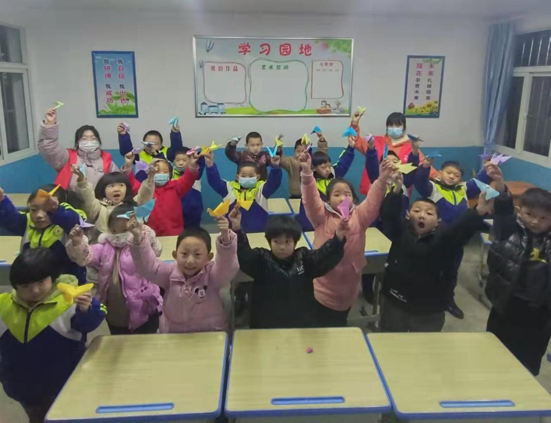 折纸翻飞,手指灵活的将一张张折纸变成栩栩如生的千纸鹤。用千纸鹤放飞孩子们的梦想。