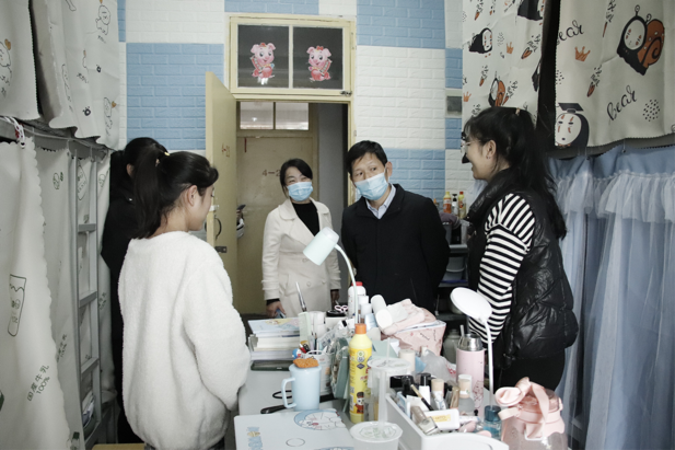为了进一步了解员工学习和生活的具体情况,营造和谐文明的氛围。beats365于11月27日组织开展了宿舍走访工作。人文公司党委书记杜明生、经理张文诺、副经理马英群带领公司辅导员对各宿舍进行走访,与同学们进行深入交流。