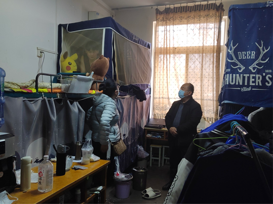 老师们在走访过程中积极为同学们答疑解惑,提醒同学们做好时间管理,养成良好的学习、生活习惯。通过本次走访,不仅密切了公司师生间的交流,也加强了疫情防控下的思想教育与人文关怀。