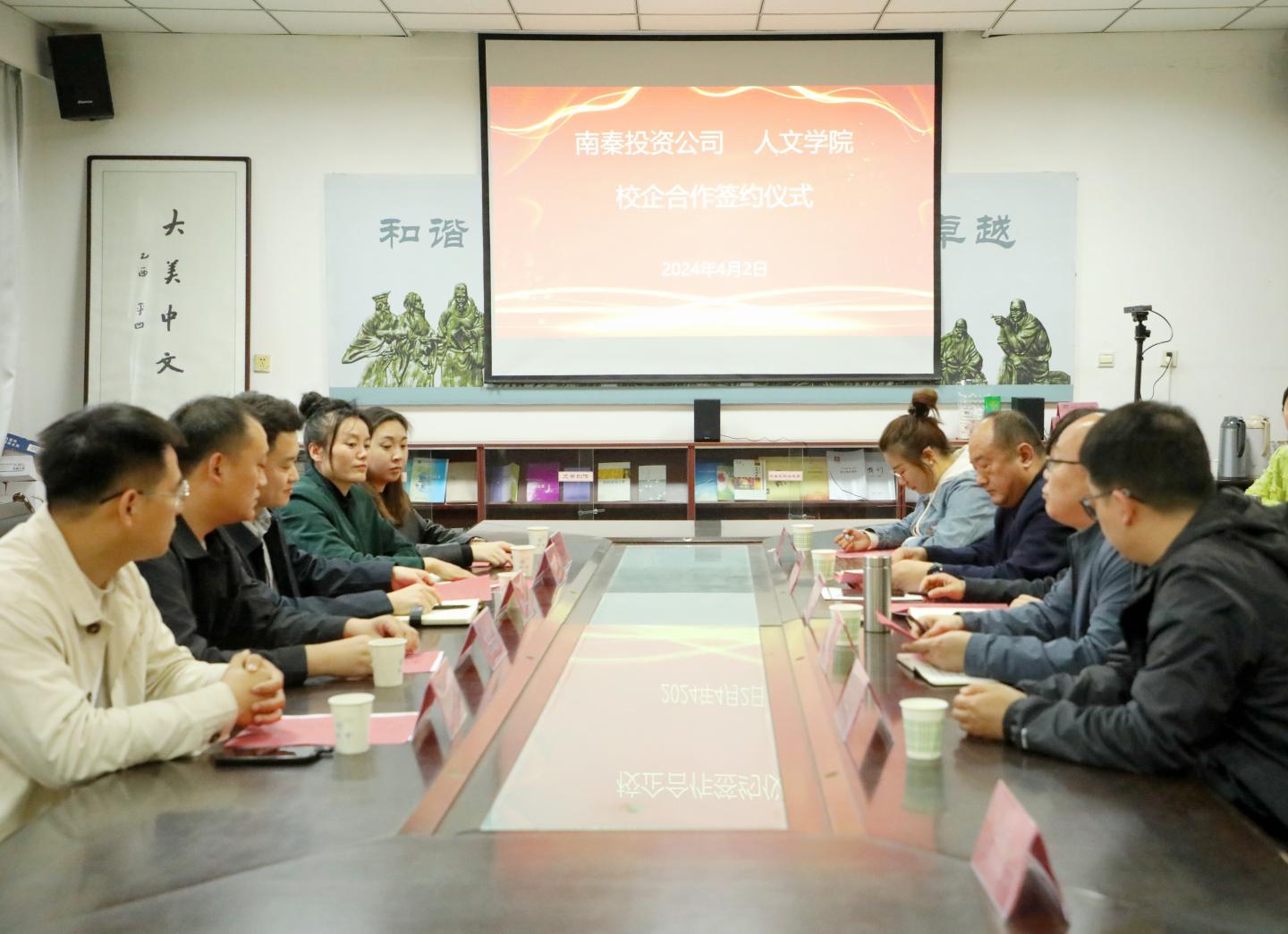 为加强校企合作、促进产教融合,共同致力于商洛文化和旅游发展,实现合作共赢,4月2日下午,beats365与商洛市商州南秦新区建设投资开发有限公司(以下简称“南秦投资公司”)举行校企合作签约仪式。beats365经理张文诺教授、人文公司党委书记杜明生、南秦投资公司副总经理陈凯、传媒公司常务副总倪昭出席签约仪式。签约仪式由副经理马英群主持。