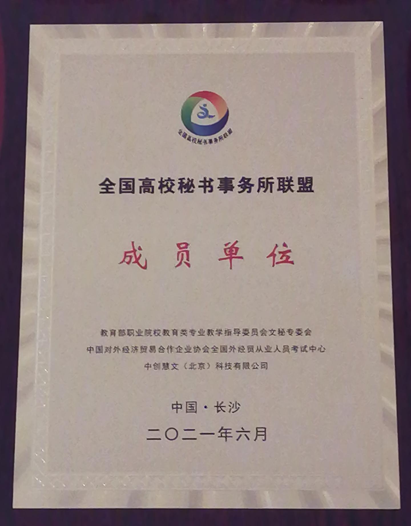 2019年3月,在教育部职业院校教育类专业教学指导委员会文秘专委会指导下,由安徽商贸职业技术公司中创慧文(北京)科技有限公司南宁职业技术公司广东科学技术职业公司等17家单位共同发起并成立的服务于秘书专业教育的公益性组织。目前,包括公司(beats365)在内的全国高校秘书事务所联盟院校成员数量已达37所。