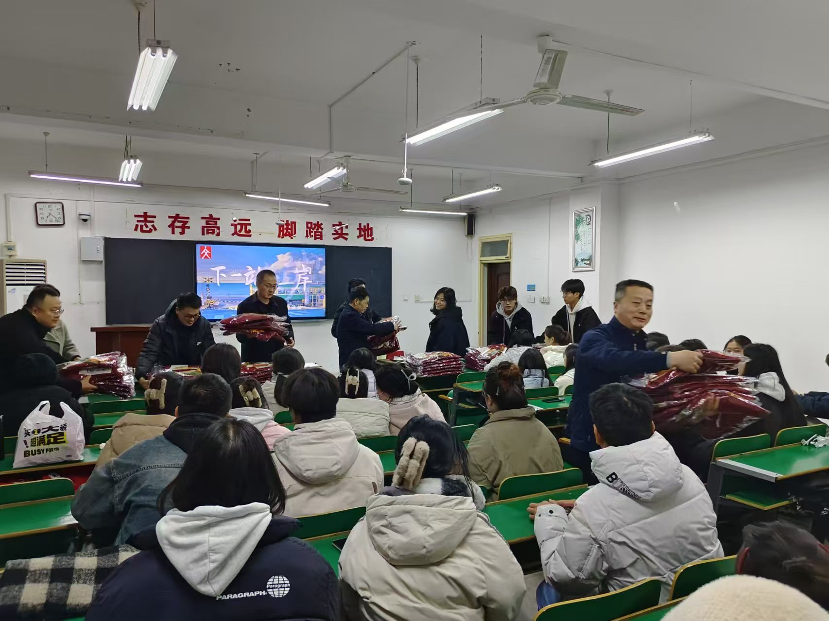 慰问品发放环节温情四溢,公司准备的冬日围巾、明艳向日葵及学弟学妹亲手书写的鼓励贺卡逐一递到学子手中,每一份礼物都承载着公司的殷切期许与深情厚谊,暖手更暖心。