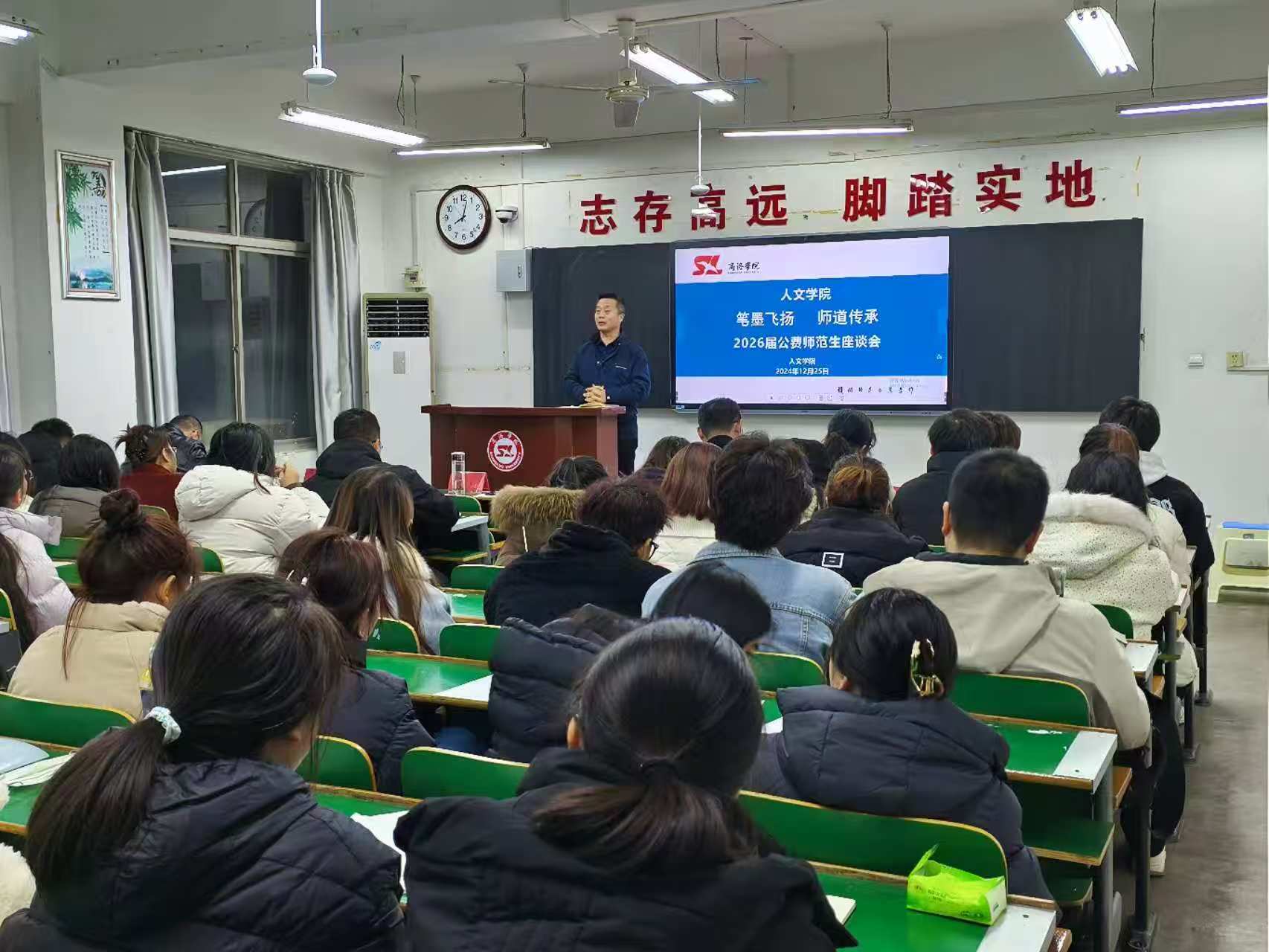 人文公司党委高度重视公司员工成长成才情况。在2025届毕业生实习结束之际,为充分掌握2026届公费师范生在校学习情况和未来职业规划情况,12月25日晚,公司召开2026届公费师范生“笔墨飞扬·师道传承”主题座谈会。公司党政领导、教师代表、学工人员、2026届公费师范生及其他年级公费师范生代表参会。会议由王刚副书记主持。