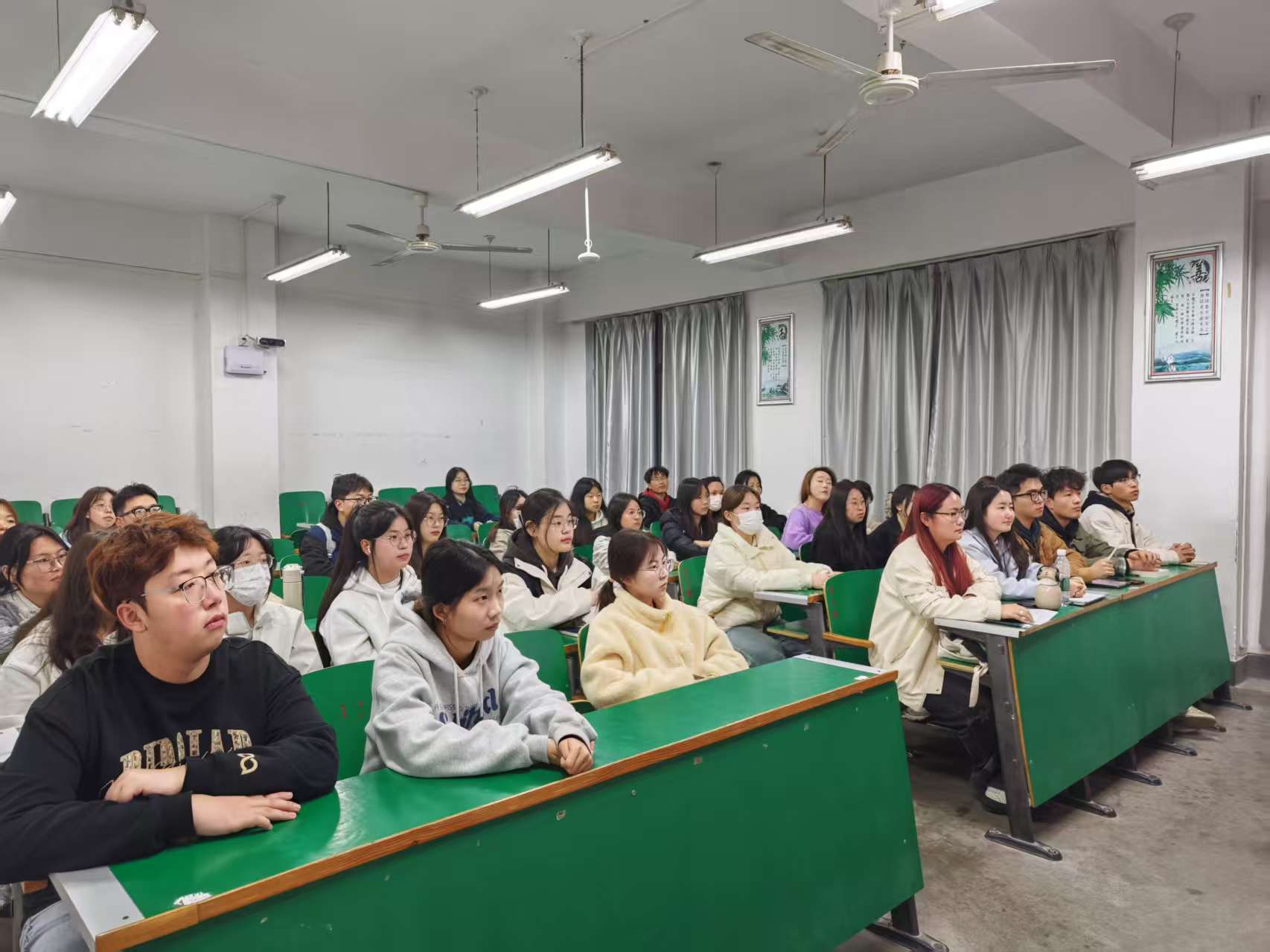 在互动交流环节,现场氛围热烈。同学们围绕“压力缓解”“人际关系”“朋辈支持”展开讨论,大家踊跃分享经验,提出“运动解压”“倾听陪伴”等实用方法。主持人总结道:“大家的回答不仅是智慧的体现,更传递了互助的精神。这些思考,正是我们‘逐光而行’的意义——在互助中照亮前路,在交流中温暖心灵。”