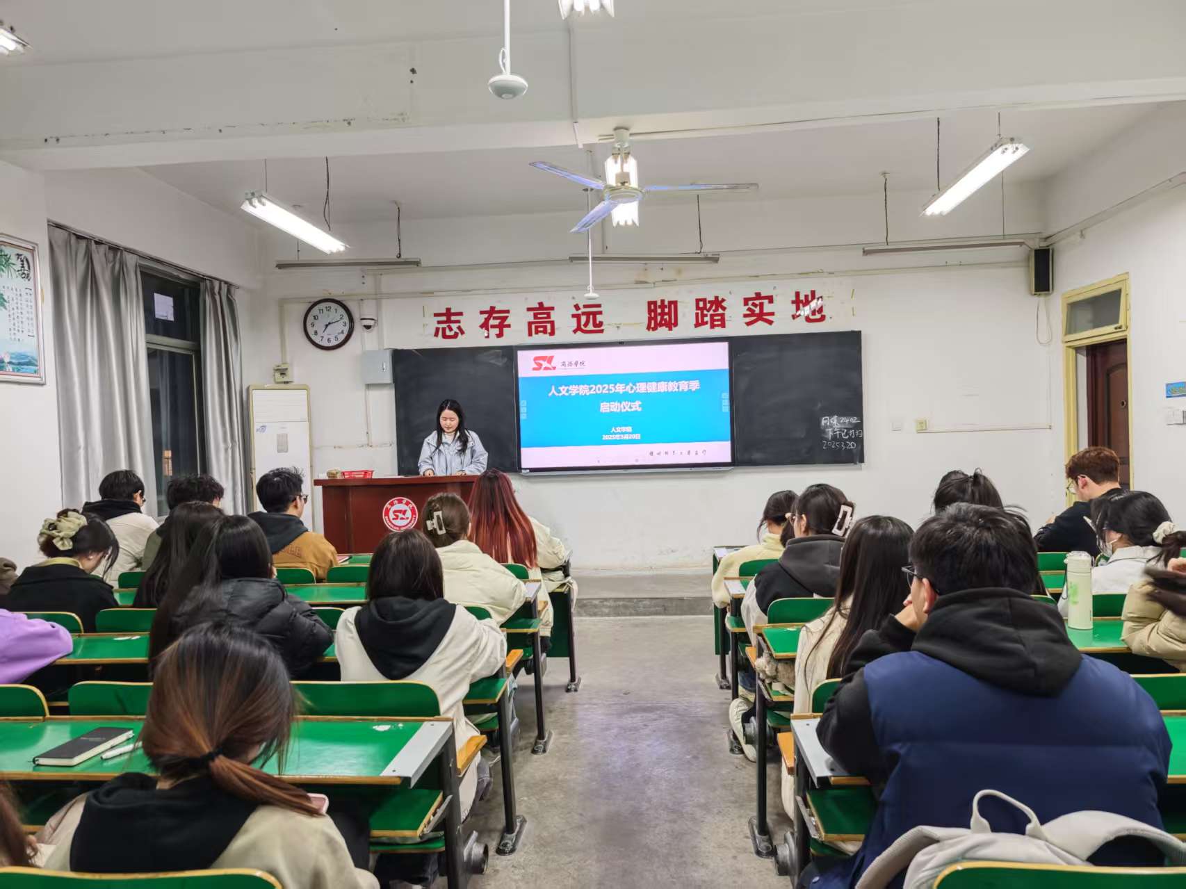 仪式首项议程为观看心理健康微视频《人生难题》,通过展现不同年龄段的困惑与成长,传递“珍惜当下”的启示,引发大家共鸣。随后,员工会主席团成员强佳鑫同学结合学业压力、情绪管理等案例,强调心理健康教育的重要性,呼吁同学们关注自我与他人的心理状态,积极利用教育季资源提升心理韧性。