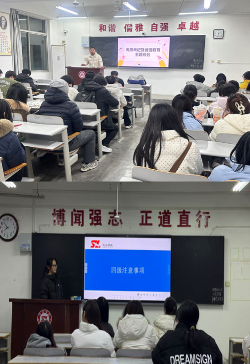 各年级辅导员聚焦各位同学备考需求,系统分享了针对性极强的应试指南和心理调适方法,梳理了考试流程中的关键注意事项,针对证件携带、入场时间、备考物品等易忽视环节进行细致提醒,帮助每位同学都能熟知规则、从容应考。