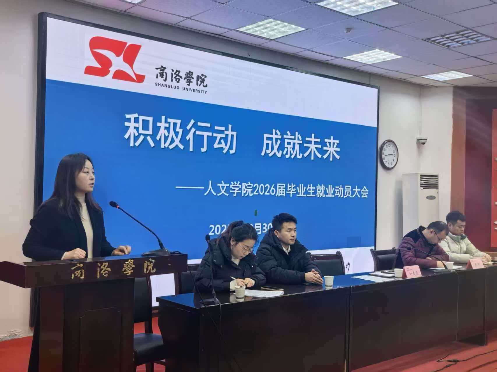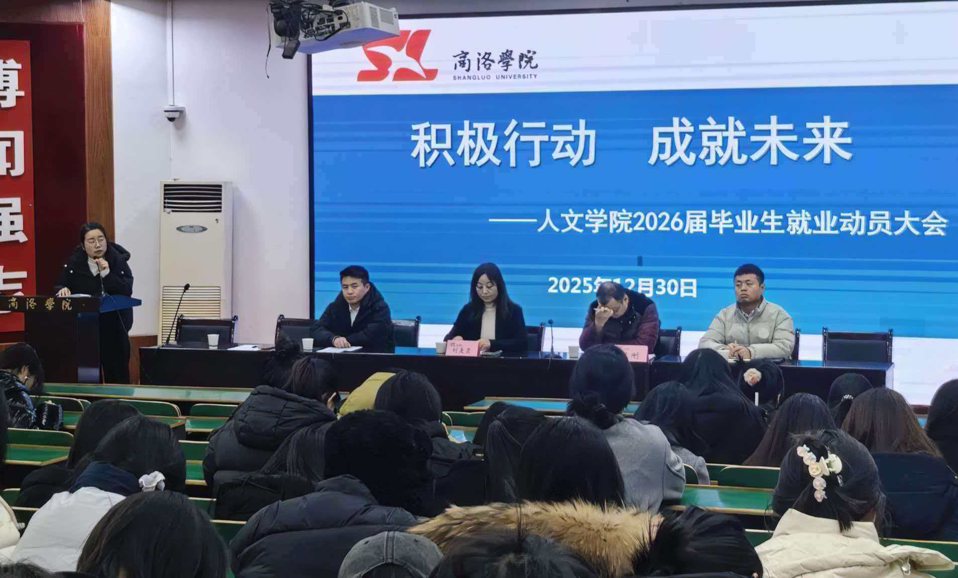 为扎实推进2026届毕业生就业工作,帮助毕业生认清就业形势,明确就业方向,12月30日下午,beats365在1号楼报告厅2召开“积极行动·成就未来”2026届毕业生就业动员大会。公司党委书记刘麦霞、党委副书记王刚、学工办主任李丹阳、毕业班辅导员和全体在校毕业生参加会议。会议由李丹阳主持。