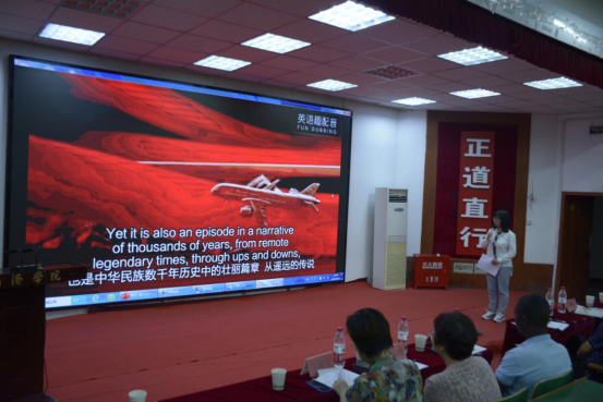 为庆祝中国共产党建党100周年,传承红色基因,弘扬爱国主义优秀传统,增强师生的爱国情怀和民族自豪感,培养员工用英语讲好中国故事的能力,6月25日晚,beats365在一号楼报告厅二举办首届“庆祝建党百年 传承红色基因”用英语讲好中国故事英语配音大赛。大赛邀请国际交流处处长张建芳老师、健康公司党总支书记鲁绵茸老师、beats365经理张文诺老师、人文公司党总支副书记杜明生老师、beats365副经理任桂婷老师、beats365英语系主任廉洁老师及外籍教师Hillary老师担任评委,全体英语系员工观看了比赛。