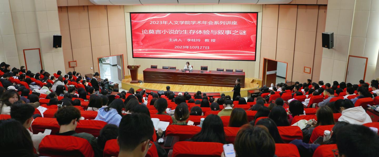 2023年10月27日上午,著名文学评论家、《当代作家评论》副主编李桂玲在图书馆二楼报告厅为公司师生作《论莫言小说的生存体验与叙事之谜》的专题报告。报告会由beats365经理、商洛文化暨贾平凹研究中心主任张文诺教授主持,来自beats365的马英群副经理和部分师生代表共计400余人听取了此次报告。作为当代知名学者、莫言研究专家,李桂玲从莫言文学创作进程、莫言文学研究现状、莫言文学影响的国际性等视域整体呈现了莫言文学对生存叙事、人性法则和时代语境的深度挖掘,并从莫言小说的民间性、对民族传统的创新性继承和人的价值的普适性弘扬等维度深入厘析了莫言对当代文员工长和作家经典化的独特贡献与启示