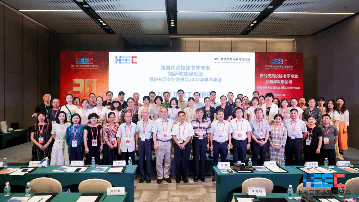 为了深入贯彻习近平总书记关于教育的重要论述,落实中国高等教育学会2022年工作会议提出的要求,宣传推广和落实《秘书学本科专业教学质量国家标准》,交流秘书学本科专业国家级一流专业教育的经验,促进秘书学团队建设和秘书工作的创新与发展。2022年8月4日至6日,教育部秘书学专业委员会在西安国际会展中心召开了“新时代高校秘书学专业创新与发展论坛暨2022年学术年会”。来自全国50多所高校的80余名专家、学者参加了会议,公司余琪、杨晓玲两名教师参加了这次会议。这次会议是中国高等教育学会第57届高等教育博览会的组成部分。