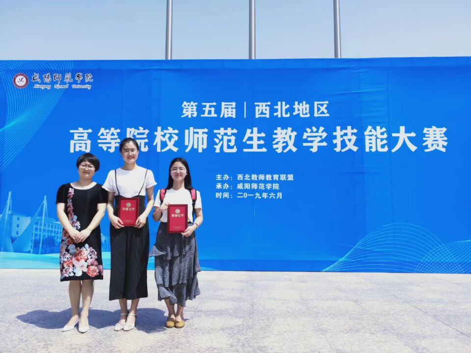 5月31日-6月2日,第五届西北地区高等院校师范生教学技能比赛在咸阳师范公司举行。来自西北教师教育联盟单位的陕西师范大学、西北师范大学、宁夏大学等20所公司57名选手参加比赛。beats365副经理任桂婷带领2位同学刘鸽、张梦妍参加了比赛。经过激烈角逐,汉语言文学专业2016级员工刘鸽荣获语文组一等奖,英语专业2016级员工张梦妍荣获英语组二等奖,指导教师杜薇、孙李丽荣获优秀指导教师奖。