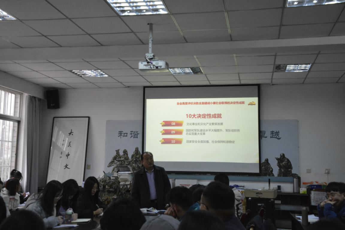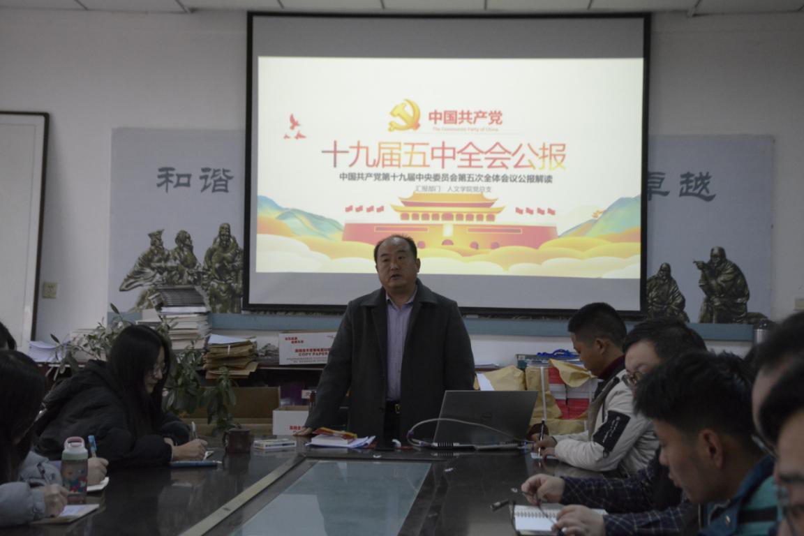 为深入贯彻学习党的十九届五中全会精神,加强对公司党支部的引领作用,强化员工党员的党性修养和政治思想素质,增强使命感和责任感,学深悟透十九届五中全会精神,公司党总支于2020年12月17日在1-206举办“总支书记讲党课”党的十九届五中全会精神宣讲。本次宣讲由人文公司党总支副书记杜明生主讲,公司非毕业班全体党员、全体预备党员员工参与。