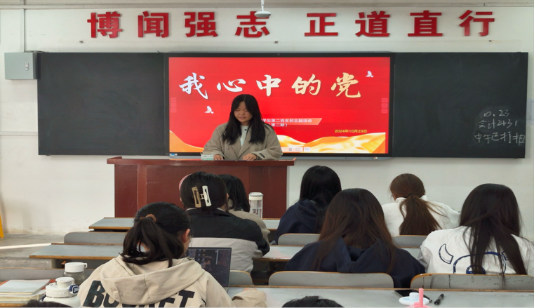 本次活动由刘翔宇同学主持。他认为,在这个充满活力与希望的校园里,我们不仅学习知识,更在党的光辉照耀下成长。中国共产党不仅是我们国家坚强的领导核心,也是我们每一个青年学子心中的灯塔,指引着我们前进的方向。