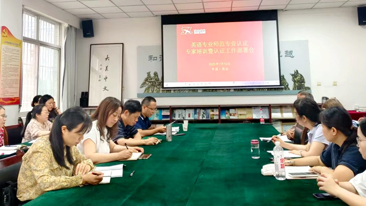 7月10日,公司召开英语师范专业认证专家培训暨认证工作部署会。公司党政领导与英语系全体教师参加会议。